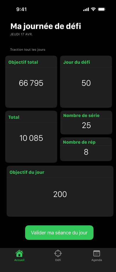 Cette application a été conçue pour aider les utilisateurs à instaurer une routine sportive durable à travers des défis quotidiens. Elle permet de définir des objectifs clairs, de suivre les progrès en temps réel et de maintenir la motivation jour après jour.